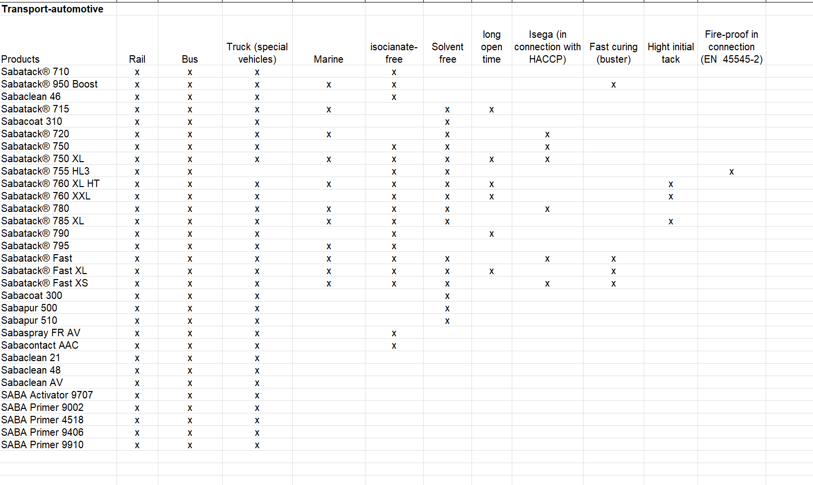 Thanks to this focused strategy, Saba is a leader in the foam adhesives and chemically resistant sealants sectors in Europe, and is also steadily approaching the position of a leading supplier of advanced adhesives and sealants for the transport industry.